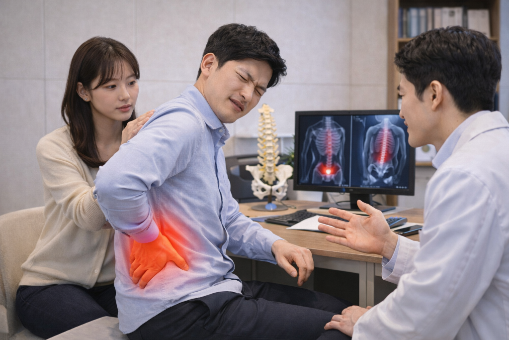 환자들의 공통된 통증 유발 인자는 '장시간 앉아 있기'다. 특히 책상 업무를 장시간 지속하거나 장거리 운전을 할 경우, 요추부의 하중이 증가하고 고정된 자세로 인해 관절막과 인대에 미세 손상이 누적된다.