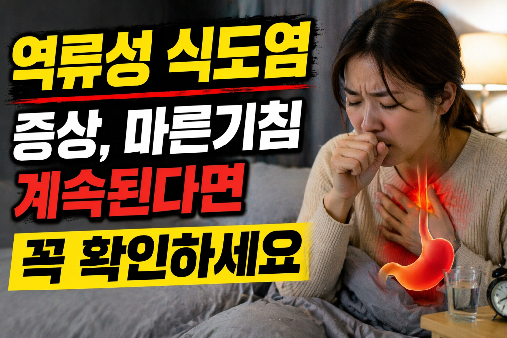 정리하면, 오래가는 마른기침은 단순 감기 뒤끝이 아니라 역류성 식도염의 신호일 수 있습니다. 전문의들이 설명하듯 역류는 식도 점막만 자극하는 데서 그치지 않고, 기침 수용체와 후두, 기도까지 영향을 주어 기침, 쉰목소리, 목 이물감 같은 비전형적 증상으로 나타날 수 있습니다. 다만 만성 기침의 원인은 다양하므로, 자가진단으로 결론 내리기보다 증상 패턴을 기록해 진료를 받는 것이 정확합니다. 식후 악화, 야간 기침, 누우면 심해짐, 신물 역류, 목소리 변화가 있다면 더욱 그렇습니다. 생활습관 교정은 치료의 기본이고, 필요할 때는 약물치료와 검사가 이어져야 합니다. “속쓰림이 없으니 아닐 것”이라고 넘기지 말고, “마른기침이 계속된다면 꼭 확인해야 한다”는 메시지가 지금 필요한 이유가 여기에 있습니다.