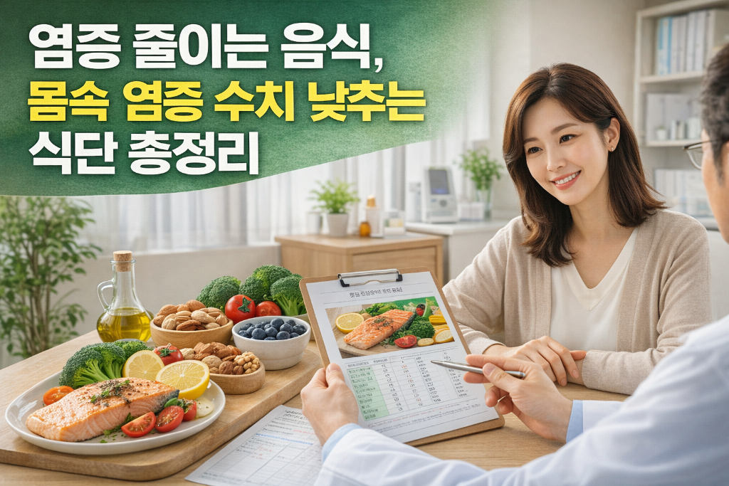 몸속 염증 수치를 낮추기 위한 가장 현실적이고 과학적인 방법은 특정 식품을 단발적으로 섭취하는 것이 아니라, 항염 중심 식단 구조를 장기적으로 유지하는 것이다. 등푸른 생선, 채소, 올리브유, 통곡물, 견과류 중심 식단은 다수의 연구에서 긍정적인 결과를 보여왔다. 반대로 정제당과 가공식품을 줄이는 것 역시 중요하다.
