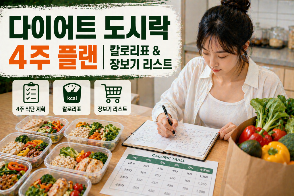 다이어트 도시락 4주 플랜|칼로리표 & 장보기 리스트